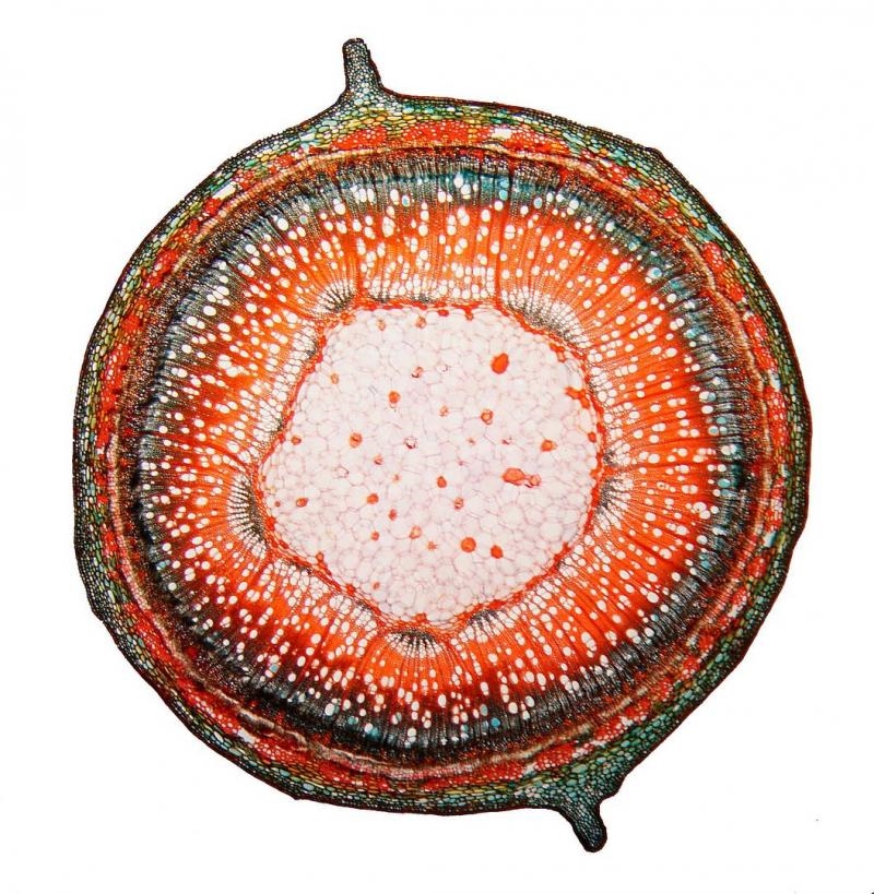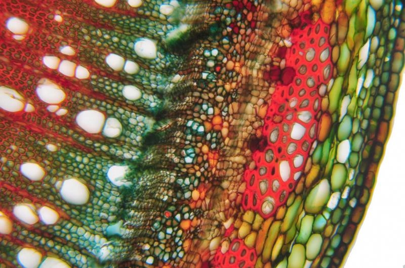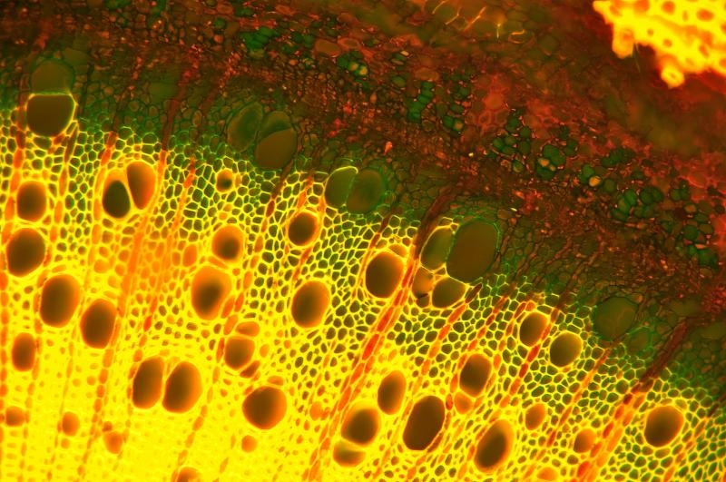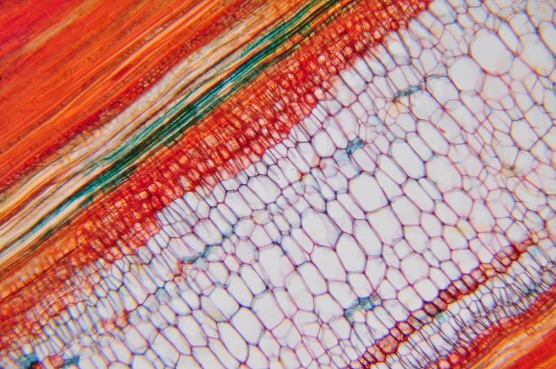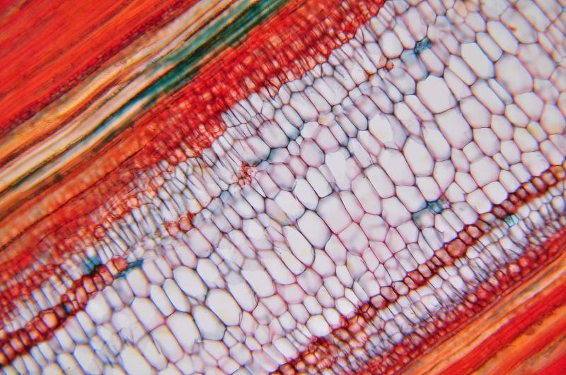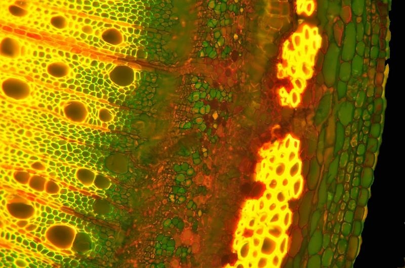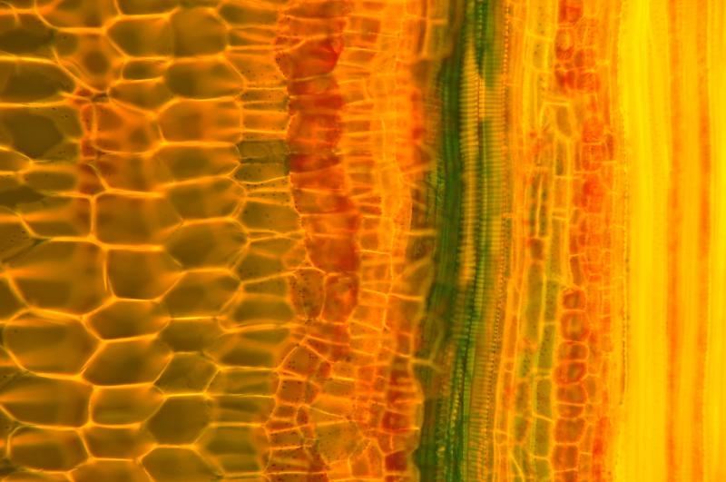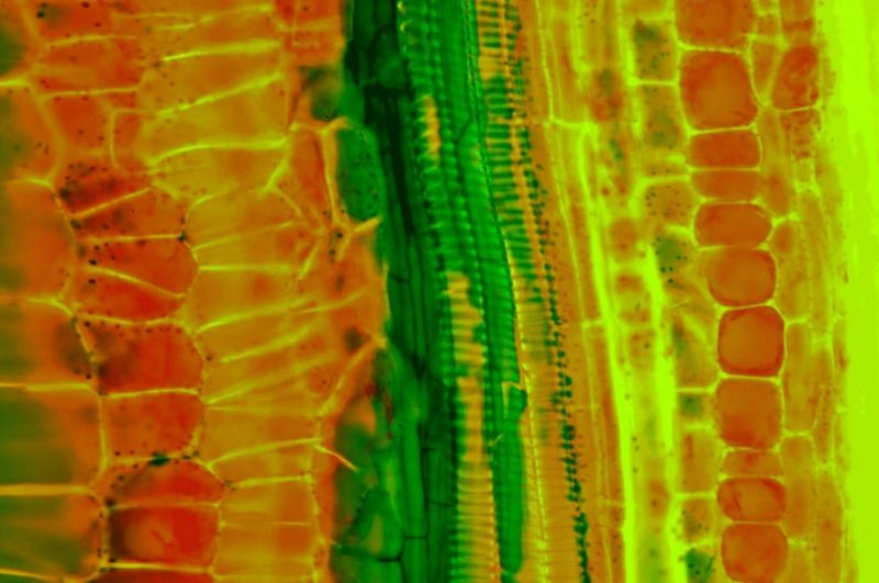 Hier liegen mehrere Zellschichten im Markparenchym übereinander, Schnittdicke 40 Mikrometer.