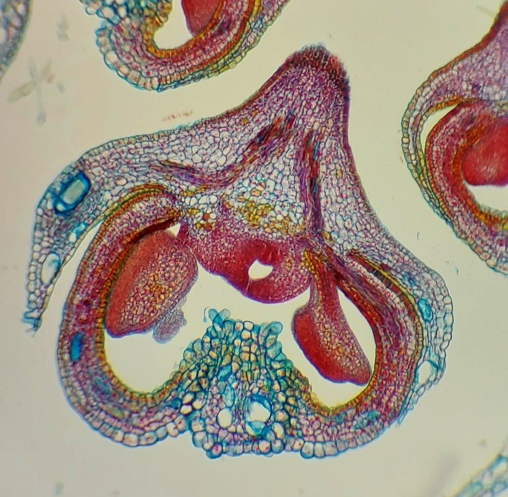 meine bisherigen Schnitte habe ich fast ausschließlich mit Etzold FAC gefärbt. Letzte Woche habe ich Acriflavin erworben und wollte damit meine Präparate etwas aufbessern und neue Färbungen versuchen. Da Acridinrot schwer zu bekommen ist momentan, habe ich die bekannte Wacker Färbung etwas abgewandelt. Das Ziel war eine möglichst einfach durchzuführende Färbung weshalb ich etwas herumexperimentiert habe. Das Ergebnis ist eine ganz brauchbare und einfache Simultanfärbung für botanische Schnitte, die folgendermaßen angesetzt wird: