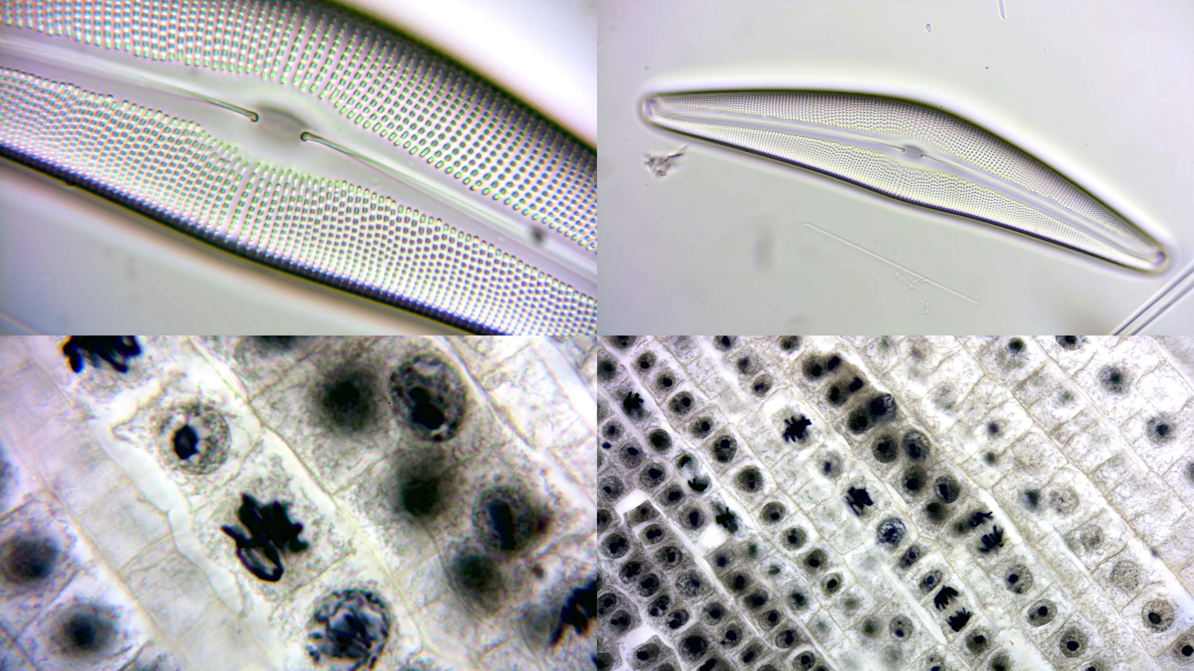 Das ist einfach Delosperma cooperi, ein erster Färbeversuch, eingetrocknet, da ein paar Tage alt. Aber zu Anschauungs- bzw. Fragezwecken reicht es. Fotografiert mit meinem Handy. Vergrößerung: Okular 10x, Objektiv 4x