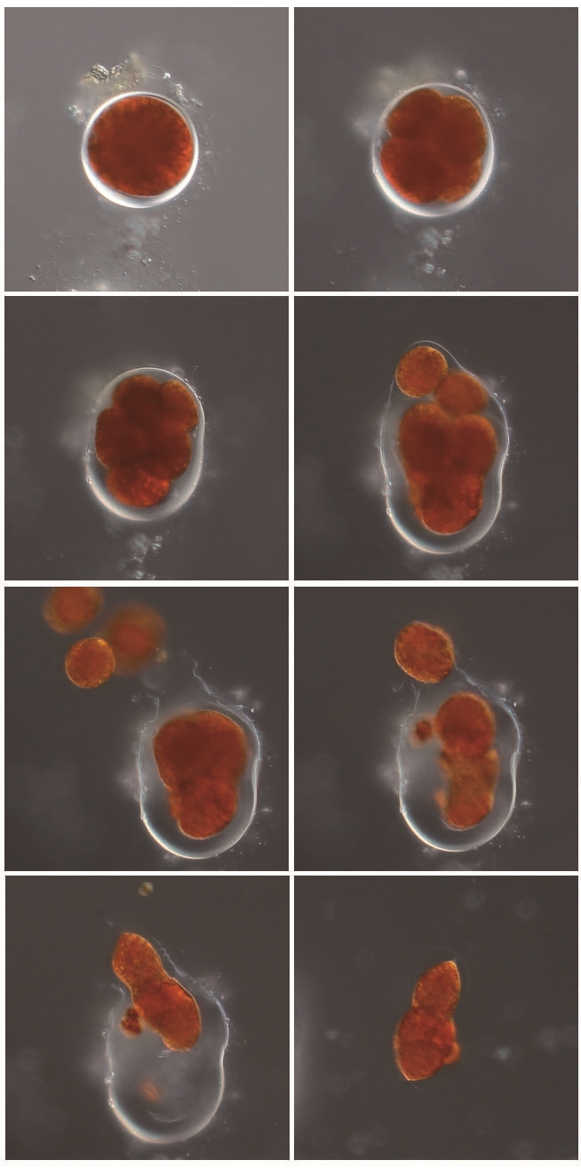 Beeindruckend finde ich die Vitalität der Gameten: Wild schwirren die Gameten innerhalb der Gallerthülle umher, bald wird die Hülle nicht mehr dem Ansturm stand halten können und bersten...