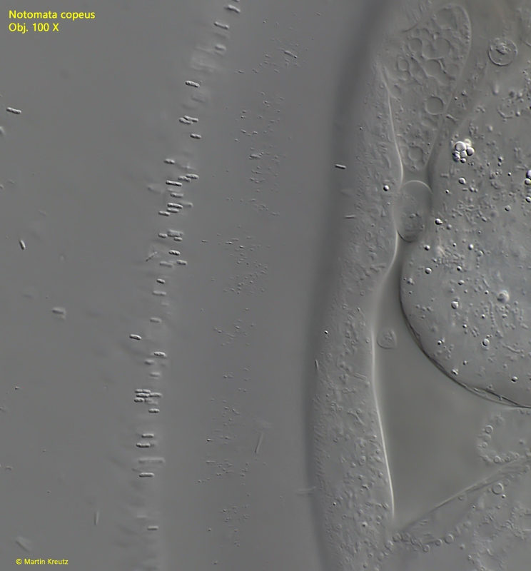 Danke für Deine Diskussion der möglichen Funktionen der Gallerthülle. Tatsächlich wird es wahrscheinlich schwierig sein, die wahre Funktion der Gallerthülle in Erfahrung zu bringen. Aber es gibt vielleicht Indizien. So finde ich Notommata copeus praktisch ausschließlich im aufschwimmenden Kraut oder an der Wasseroberfläche, wie im Fall der Massenentwicklung. Notommata copeus ist ein schlechter und langsamer Schwimmer. Es wäre also möglich, dass die Gallerthülle den Auftrieb verbessert und den Körper in der Schwebe oder an der Oberfläche hält.