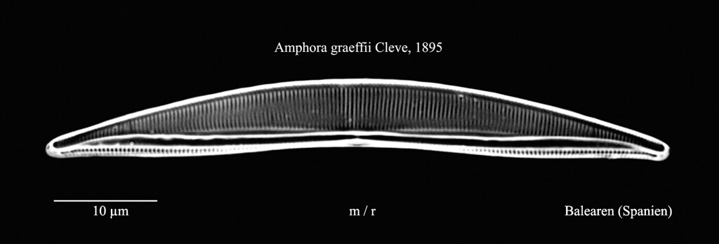 die komplette Diatomee habe ich mit dem Zeiss West Plan-Neofluar 25/o.8 Imm Korr mit Öl immergiert und den Ausschnitt mit dem Zeiss Jena Objektiv HI 100 / 1.32 (ebenfalls geölt) fotografiert.