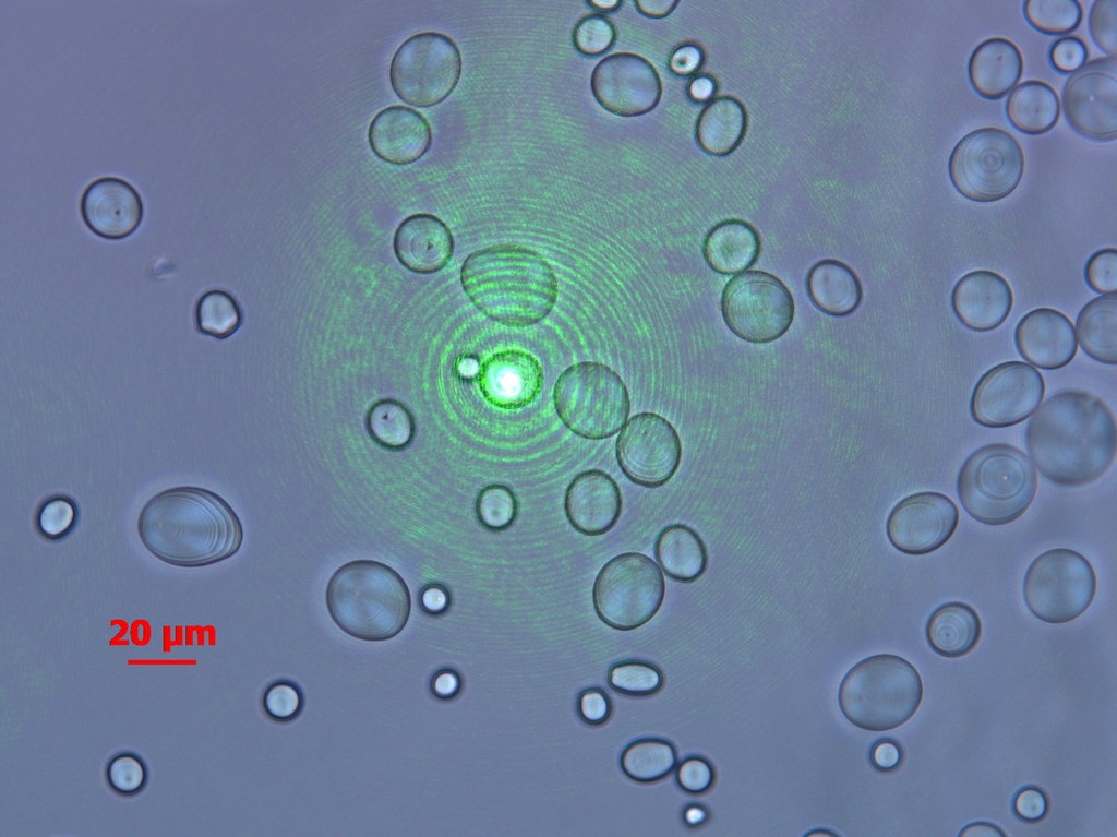 Auf ein Stärkekorn für die Messung fokussiert: