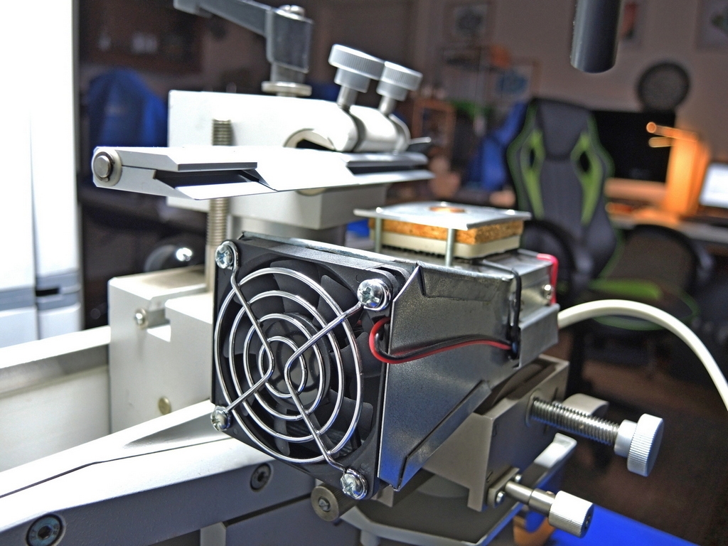 Eine Frage zum Peltierelement: Musstest Du das Schlittenmikrotom modifizieren, um die doch recht große Bauhöhe des Kühlaggregats unterzubringen, oder ging das ohne Modifikation?