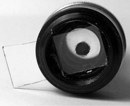 kommerziell gibt es meines Wissens eine Einrichtung für zentrales Dunkelfeld nicht. Vor über 100 Jahren hat man es - wie in dem neuen Buch von Gerlach nachzulesen - mal versucht, aber schnell wieder gelassen (und auch wozu ? erst mal diese z.T. irreführenden Abbildungen, dann wird wegen der engaperturigen Beleuchtung auch das Auflösungsvermögen nicht ausgeschöpft). Hier deshalb meine Anordnung, die ich auch garnicht für diesen speziellen Zweck, sondern als improvisierte Abbe´sche Diffraktions-Apparatur (kommerziell ist sie wohl nicht mehr erhältlich und wäre auch sehr teuer; manche Glückliche haben sie noch) "gebastelt" habe, um seine berühmten Experimente zumindest teilweise nachvollziehen zu können. (Die 12mm-Distanzringe mit 2 RMS-Gewinden sind käuflich zu haben, und im MK 2009, Heft 1, habe ich mich genauer zu diesem Thema "ausgelassen" ).