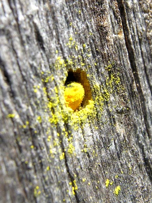 Ich beobachtete auf der Göscheneralp CH, an einem alten Baumstrunk eine Wildbiene wie sie Blütenpollen als Futtervorrat in ihre Nisthöhle einbrachte. Dabei streifte ich ihr mit einem Grashalm von ihrer reichlichen Pollenladung eine Probe ab. Diese Pollenprobe habe ich nun präpariert und in Lösung nach Hoyer eingedeckt.