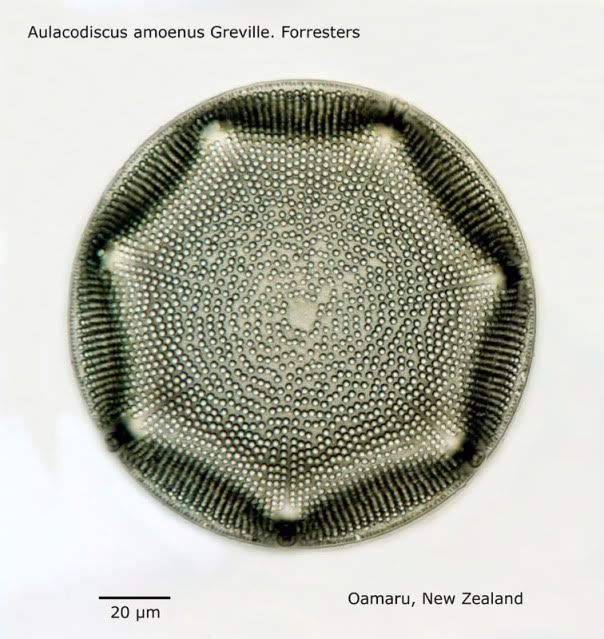 Eine Diatomee aus Oamaru / Neuseeland: Aulacodiscus amoenus Grev. Forresters.