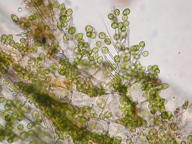 Dann gab es viele Copepoden mit epiphytischen Grünalgen, wahrscheinlich Chlorangiopsis (Zellen~20µm)
