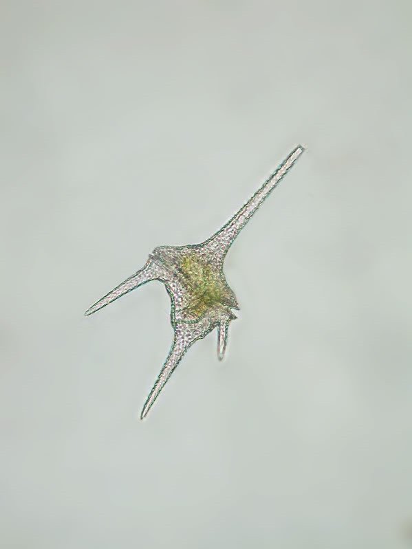 Dann gab es auffallend viele leblose Hüllen des Dinoflagellaten Ceratium hirundinella ( ~200µm)