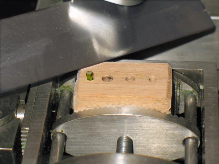 ich wollte keine Verwirrung bringen. Der Stängel war nicht in einem Möhrchen festgeklemmt, sondern stand ca. 1 mm aus einem Buchenholzklötzchen. Dieses Klötzchen ist mit Löchern mit unterschiedlichen Durchmessern versehen.