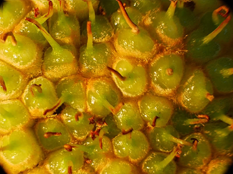 Du hast es! So ist's, Rinde (Innenseite) und grüne Frucht der Platane.