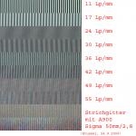 Bei dem 2. Test beträgt die maximal mögliche Auflösung 85 Lp/mm (2 Pixel/Lp).
