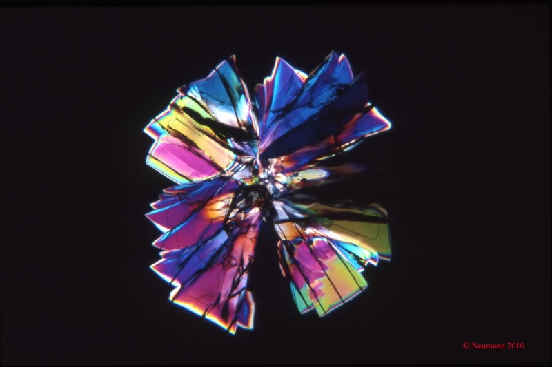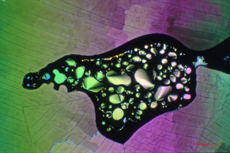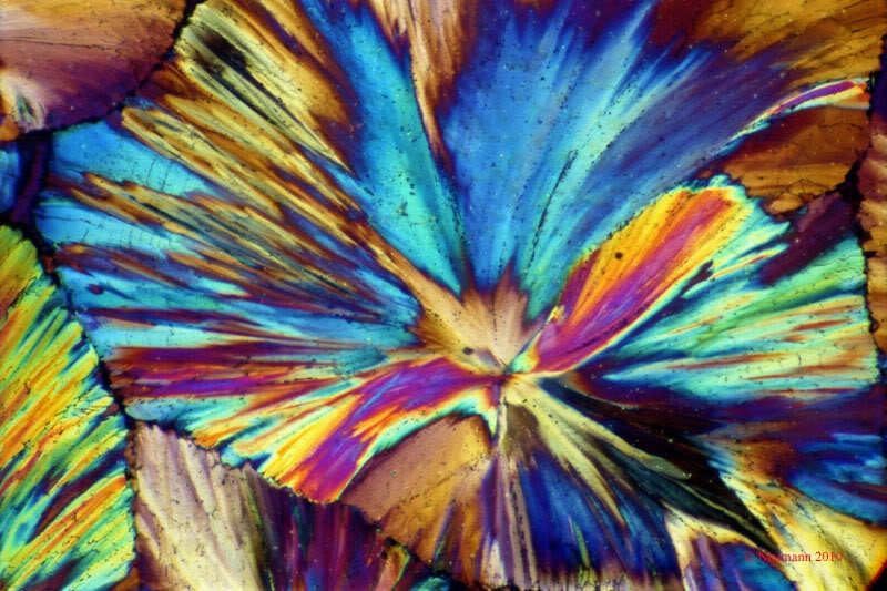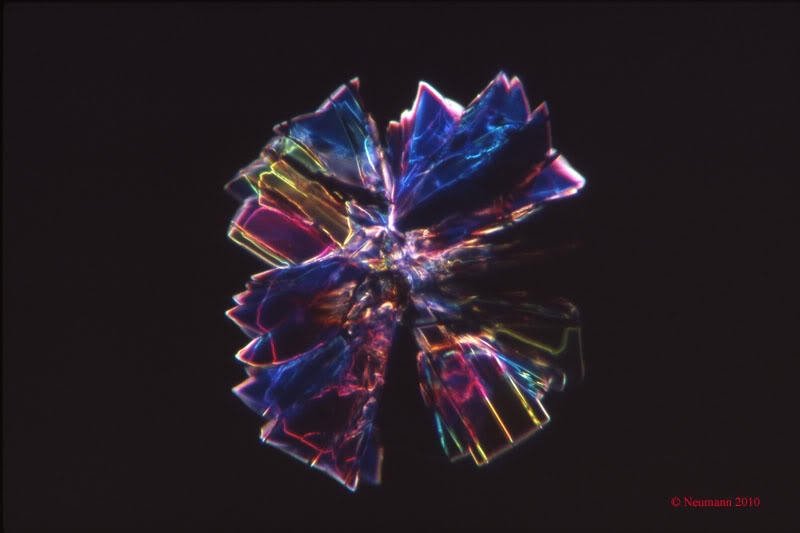 Das Thema Polarisationsmikroskopie läßt mich nicht los. Ich verfolge dabei keine wissenschaftlichen Interessen; einzig die Ästhetik der Formen und Farben sind mir hier Motivation.