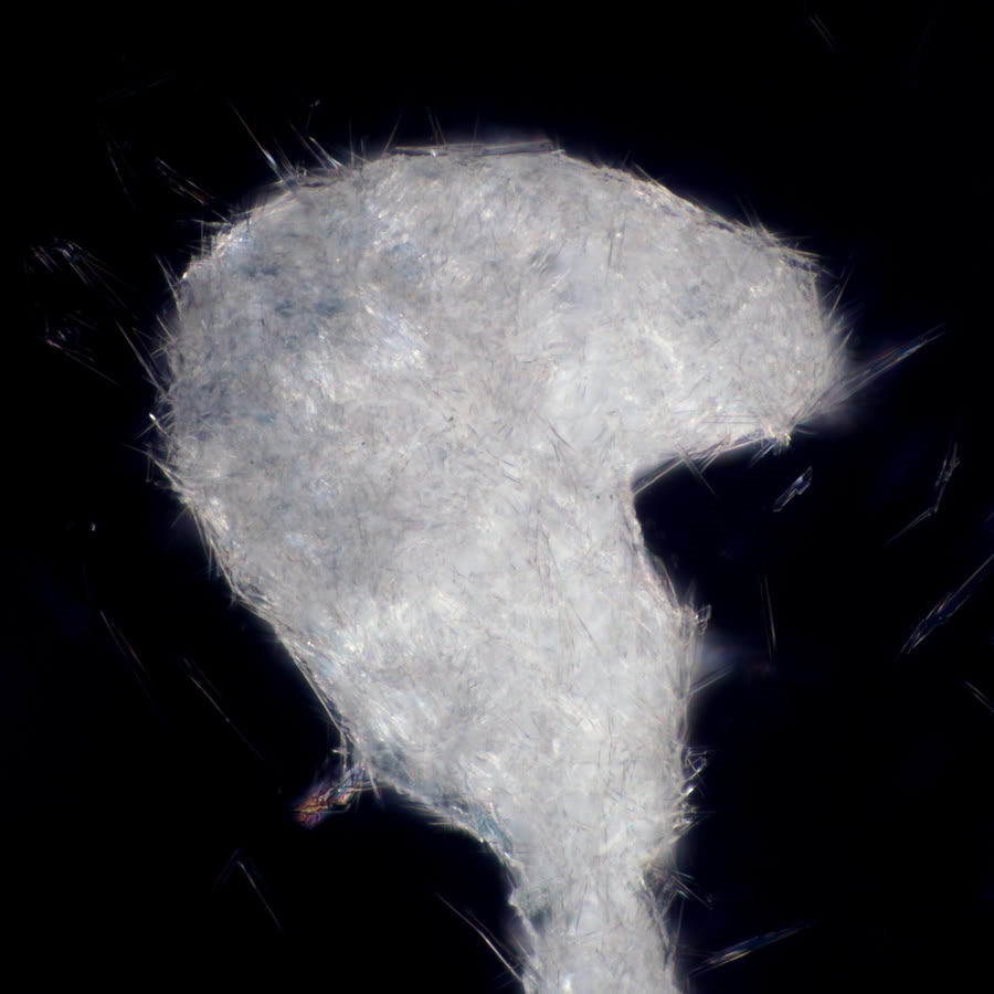 IBU löst sich nicht gut in Wasser, aber nach dem Verdunsten sieht man erstaunliche Formen in polarisiertem Licht unter dem Mikroskop: