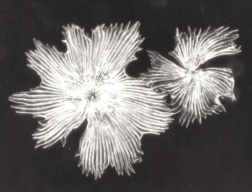 Angeregt von den Kristallsternen von Klaus Herrmann, möchte ich auch ein "weihnachtliches" Motiv beisteuern. Da ich gerade nicht an das Mikroskop komme, habe ich zu einem Foto gegriffen, das ich vor fast 25 Jahren am Mikroskop aufgenommen, entwickelt und vergrößert habe.