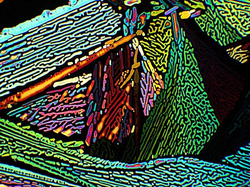 zur Zeit gefallen mir die strahlend bunten Bilder von kristallisierten Substanzen unter Pol-Licht sehr gut. Sie bringen Farbe in das massige ,,Weiß" da draußen.