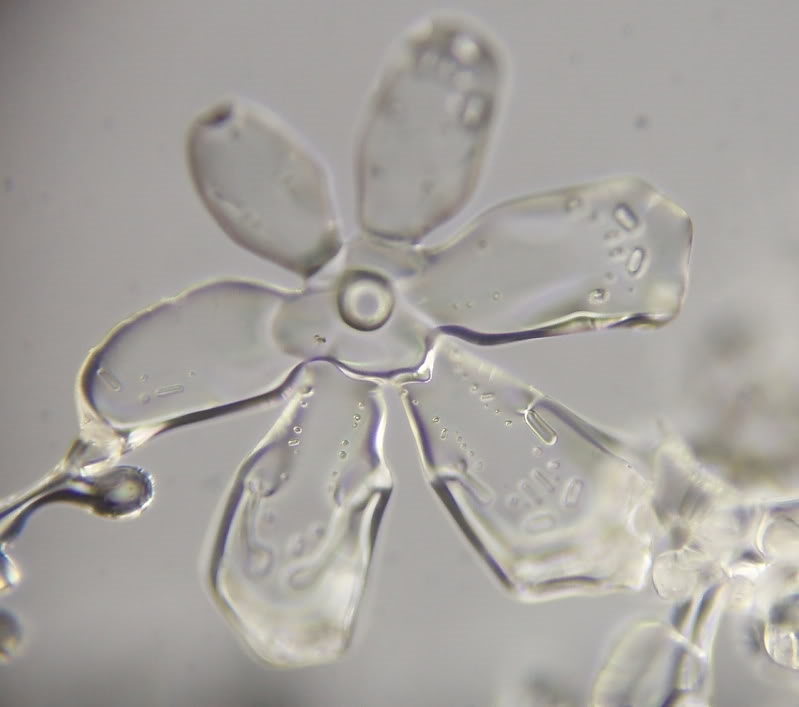 Hier mein erster Versuch Schnee zu fotografieren. Leider ist nur ein kleiner Teil von der Kristall scharf. Objektiv 10x.