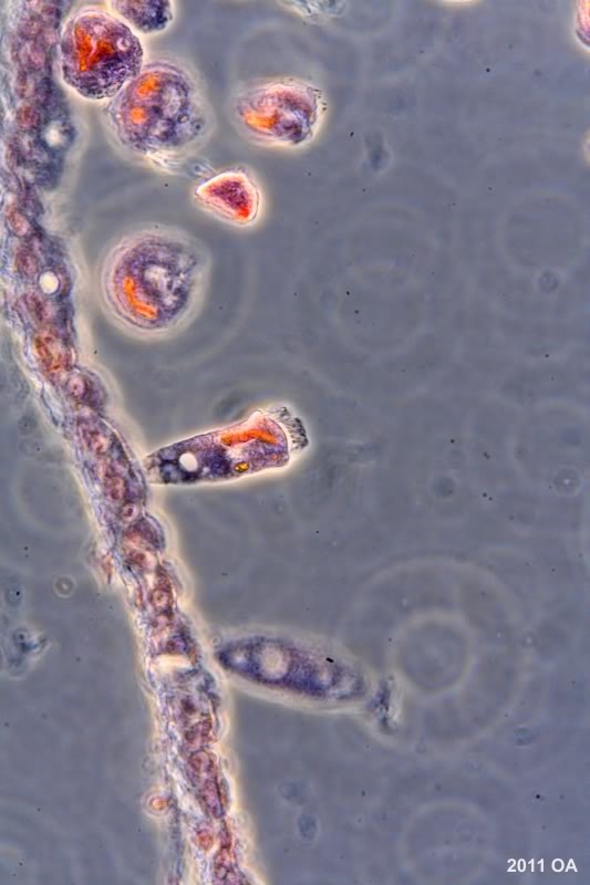 @Holger: Leider kann ich nichts zur Bestimmung beitragen, meine (spärliche) Literatur über Ciliaten lässt keine sicheren Aussagen zu. Ich sehe solche endoparasitischen (oder kommensalischen ?) Formen zum ersten Mal.