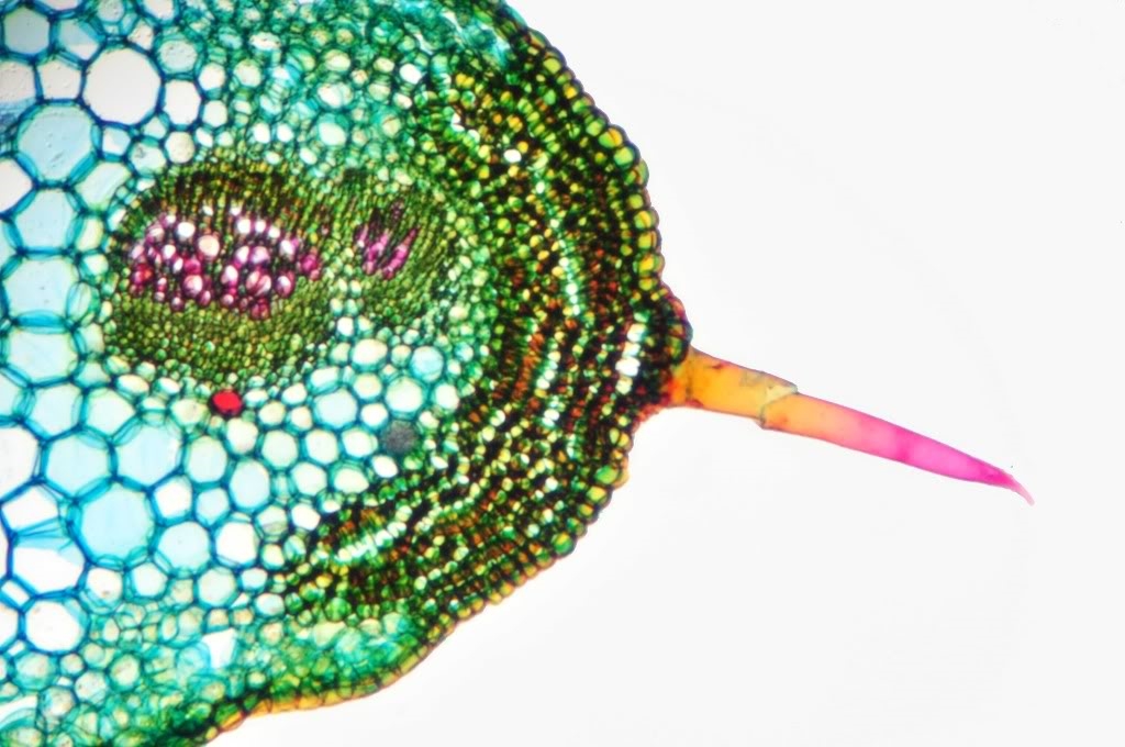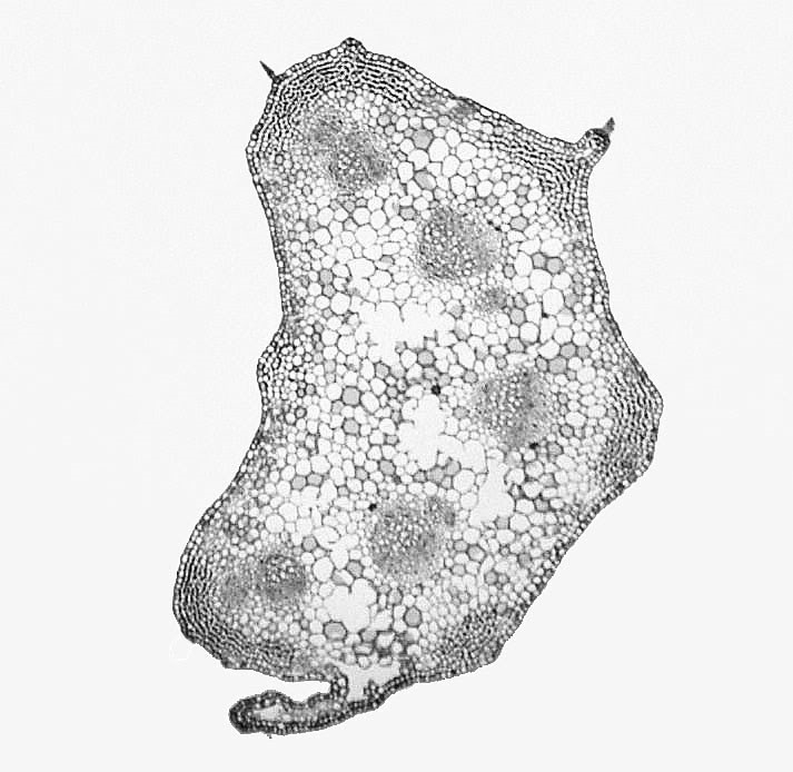Bild 01 Mikrotomschnitt Blattstiel, quer, 40 µm (ziehender Schnitt - Winkelstellung 15 Grad) (Sambucus nigra)