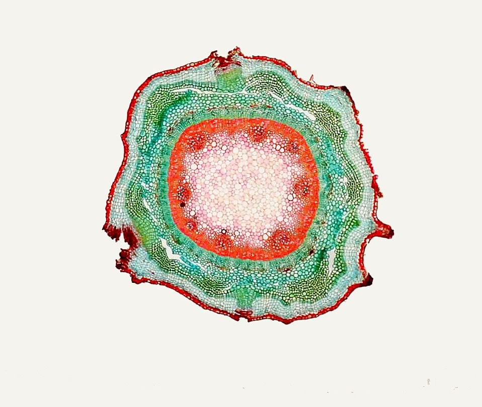 Der Sklerenchymring wird mit zunehmendem Dickenwachstum durch die Bildung von Parenchymzellen unterbrochen, wodurch die "Inseln" entstehen.