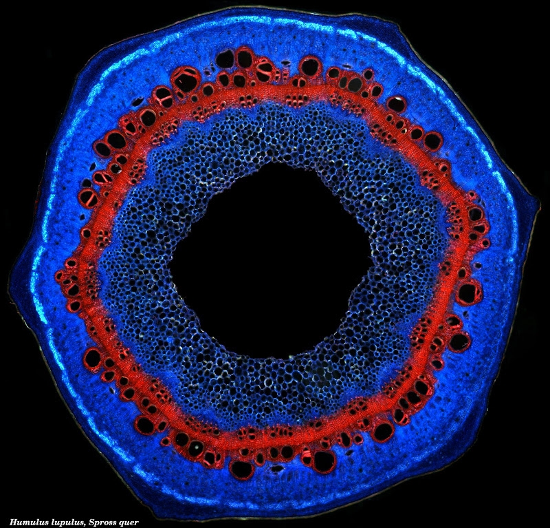 Botanik: Hopfen, Spross quer - Vergleich Etzold FSA und Etzold Grün *