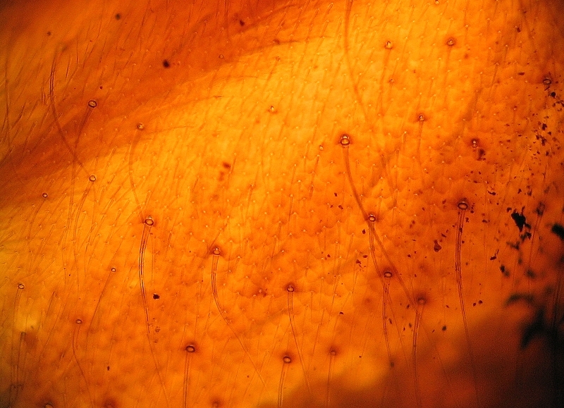 Bild 1: Chitinpanzer des Femur mit Behaarung