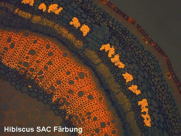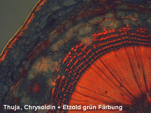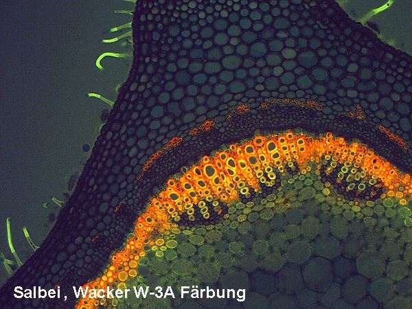 es muß nicht unbedingt eine perfekte Auflichtfluoreszenzeinrichtung sein. 2 passende Filter und eine empfindliche Kamera und schon sind erste Ergebnisse sichtbar. Die 4 Beispiele bitte nur als Anregung verstehen. Es sind jeweils einfachste Stängelquerschnitte.