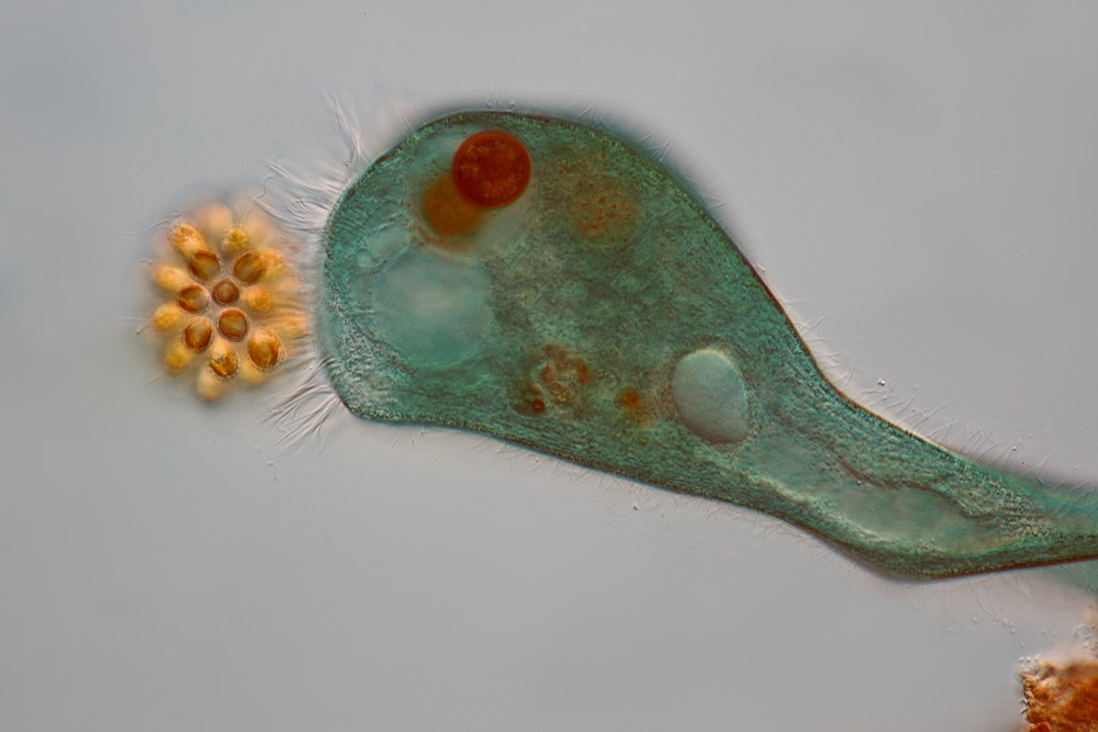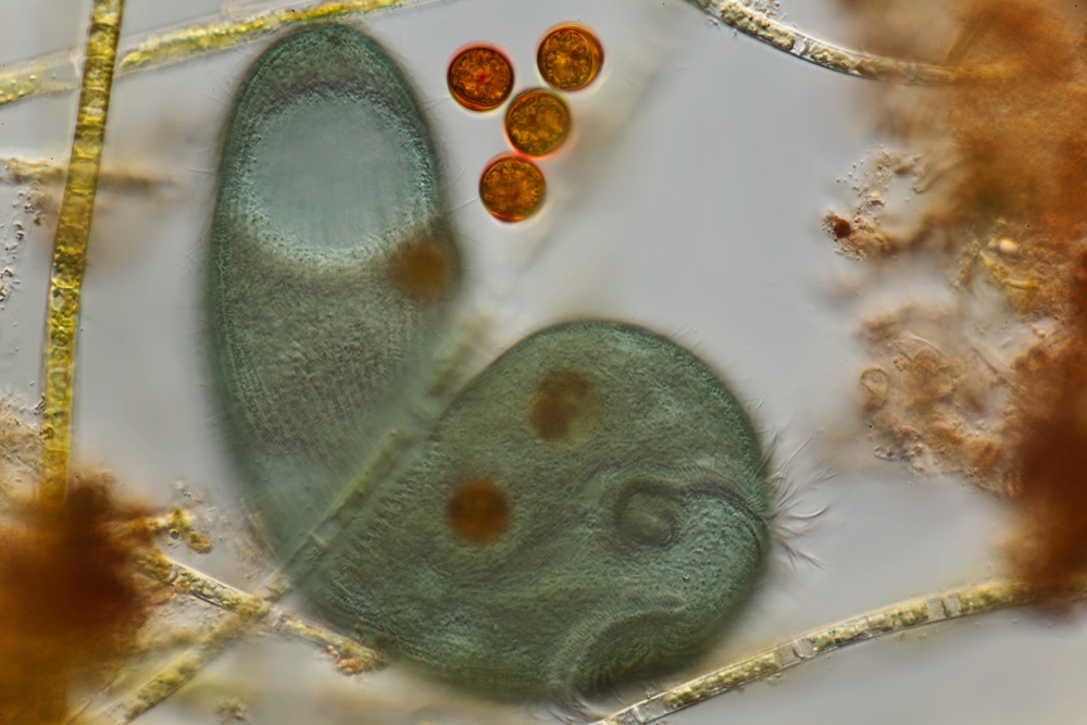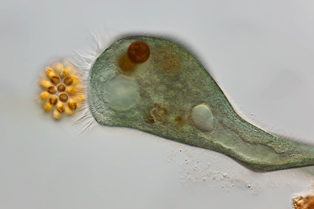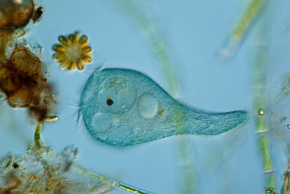 Darin habe ich dieses blaue Trompetentierchen entdeckt.