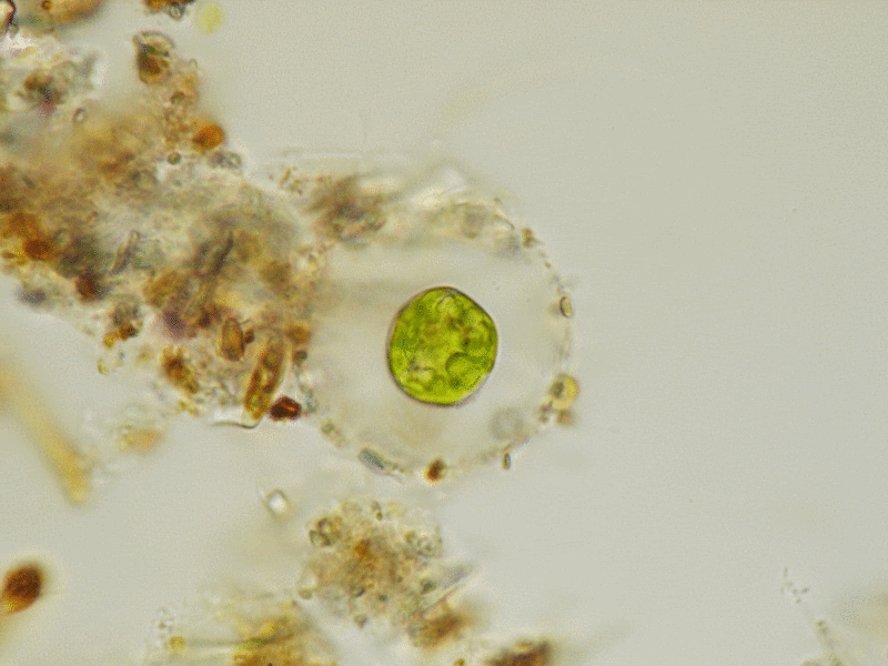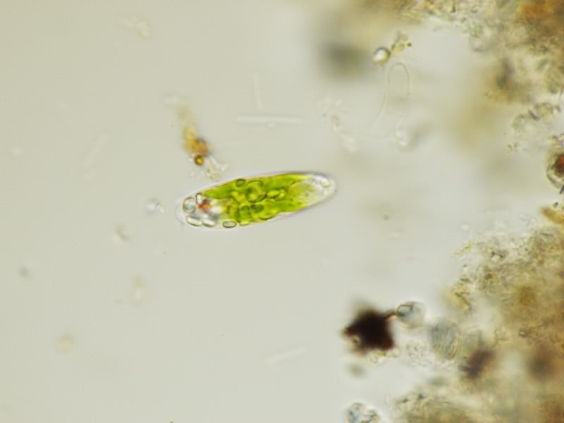 Die grüne Kugel begann sich schneller zu drehen und auch zu strecken und entwickelte sich zu einer Euglena sp. Hier eine kleine Animation dieses Stadiums: