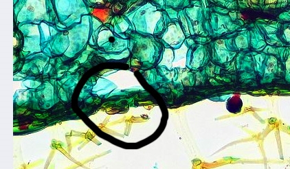 Tr     : Trichome (Pflanzenhaare), diese stehen dicht an dicht wie kleine Bäumchen auf Blattober- und -unterseite.