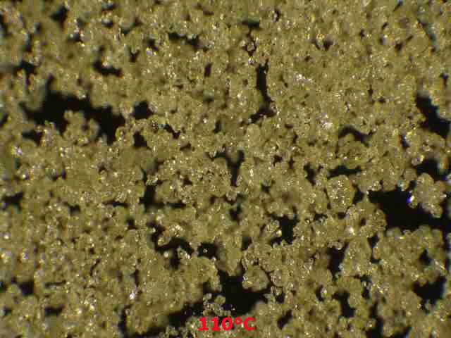 Mit Schwefel  klappte es auch sehr gut: Ab 116°C fing dieser an zu schmelzen. Zu sehen ist das in der folgenden Ansicht: