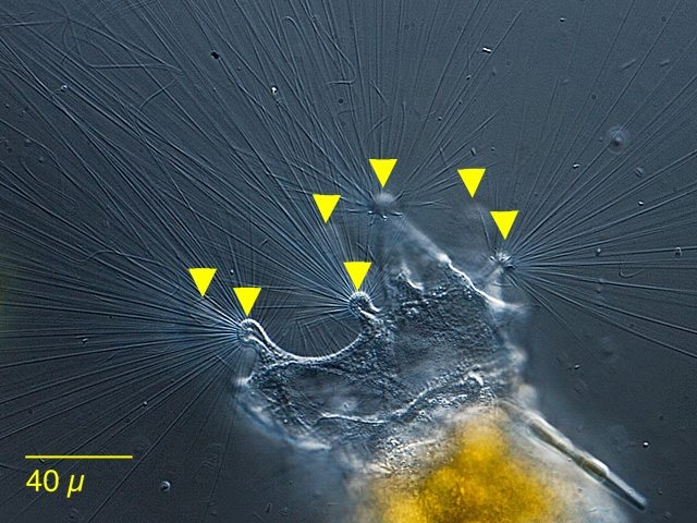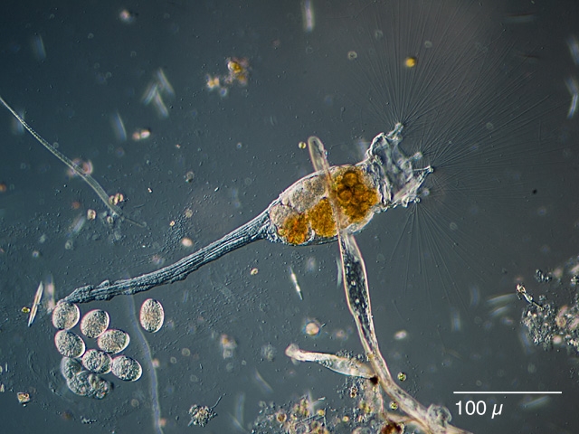 Das besondere ist nun, dass beide Arten aus derselben Probe stammen, sie waren auch in einem Wassertropfen mehrfach zu finden. Welche unterschiedlichen ökologischen Nischen die beiden Arten besetzen, ist nicht klar. Das Beutespektrum, bezogen auf den Mageninhalt, sieht jedenfalls identisch aus.