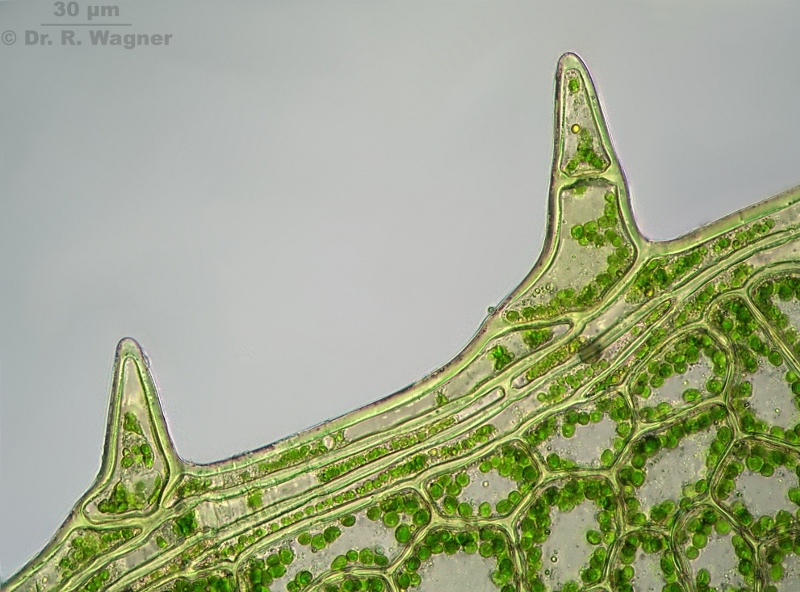 - Der Blattrand ist gesäumt und gezähnt. Die Zähnchen sind ein- oder zweizellig.