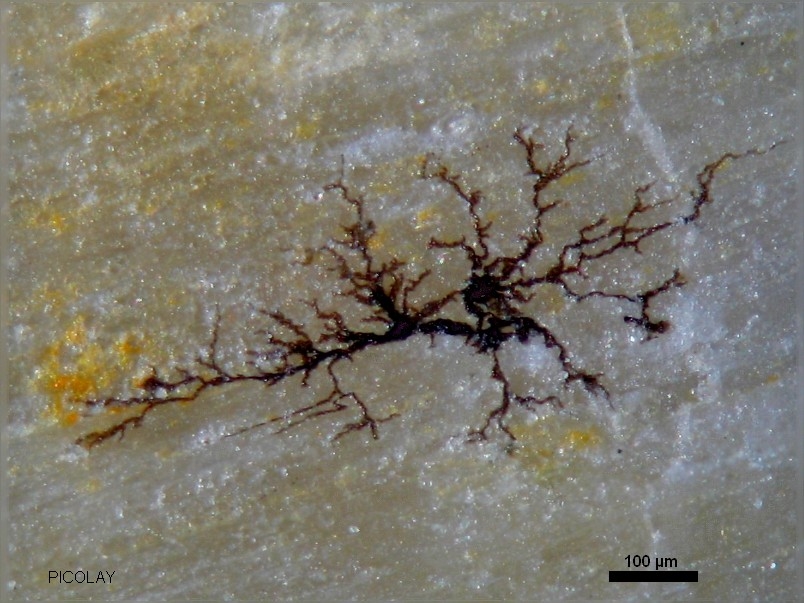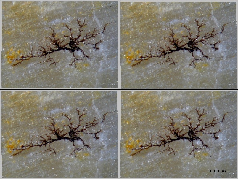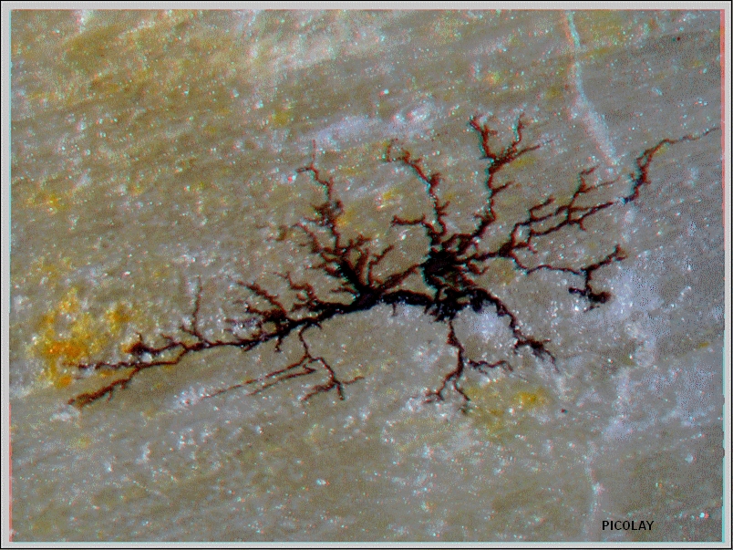 Will man wirklich sehen, wie innig das Pilzgeflecht sich in das Gestein fügt, braucht es 3D, hier zunächst für die Kreuz- und Parallelgucker: