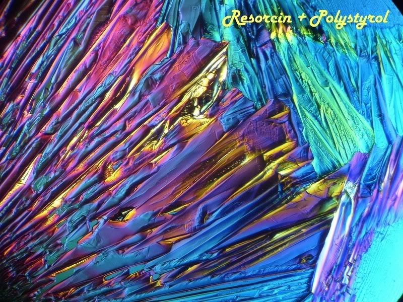 Resorcin im pol. Licht, 6,3x Objektiv, mit Samsung S700 Digiknipsi durchs Okular fotografiert.
