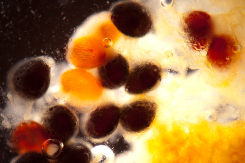 Und dieses Essen endete mit einem Nachtisch, auf dem auch Panna Cotta war. Als ich die ausgeöffelt hatte, war unten ein dunkler Bodensatz, von dem man bei dieser Speise davon ausgehen kann, dass es Vanillemark ist. Meine mikroskopische Neugierde hat mich getrieben eine Probe in eine Serviette einzuwickeln und einzustecken. Und diese Probe hab ich vergessen und jetzt erst wieder gefunden. Eigentlich wollte ich sie schon entsorgen hab sie mir aber doch schnell unterm Stemi angeschaut. Und da sah ich, dass die Samen wunderbar sauber sind und 2-farbig. Deshalb habe ich dann doch etwas Aufwand getrieben und schnell mal 50 Bilder gemacht. Diesen Stack aus 11 Aufnahmen hat mein Sohn dann noch Hintergrund-gereinigt. Na und ich bin schon sicher, das es Vanille ist. Nur für die 2 unterschiedlichen Ausprägungen habe ich keine Erklärung.