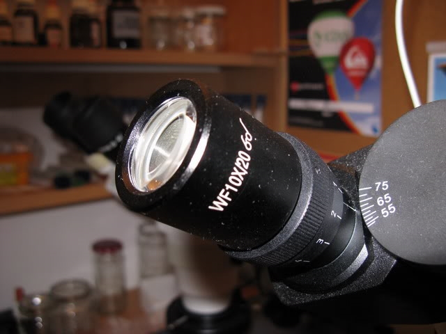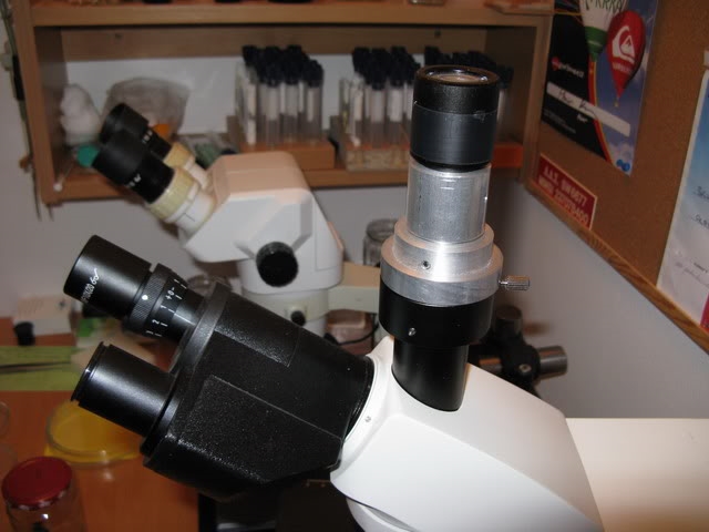 Irgendwann habe ich die Nerven verloren, meinen Fototubus auf 30 mm ausgedreht und so ein Stemi Okular reingesteckt.