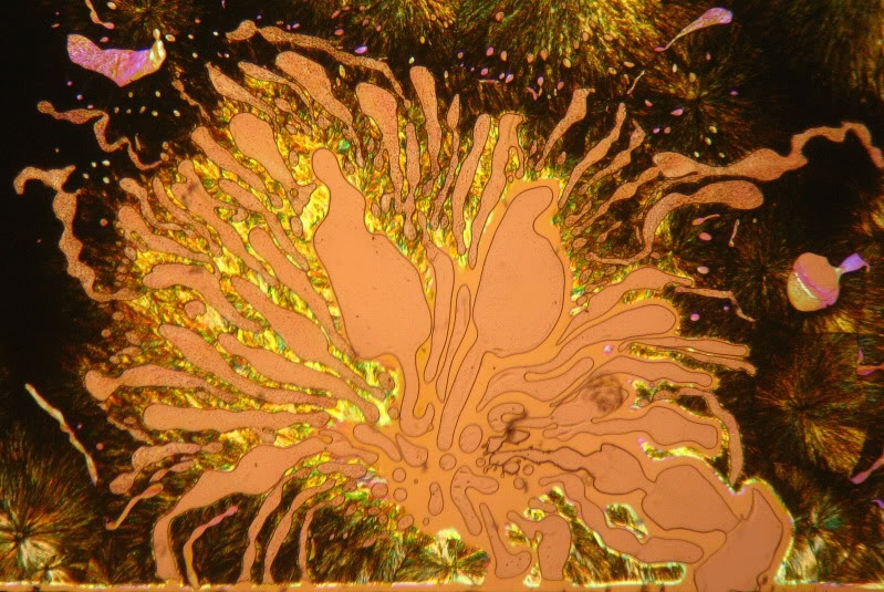 Die ist natürlich kein Unterwasserschnappschuss, sondern (wieder nur) eine Kristallisation, und zwar von Tretinoin = Vitamin-A-Säure, geschmolzen. Vielleicht gefällt sie trotzdem.
