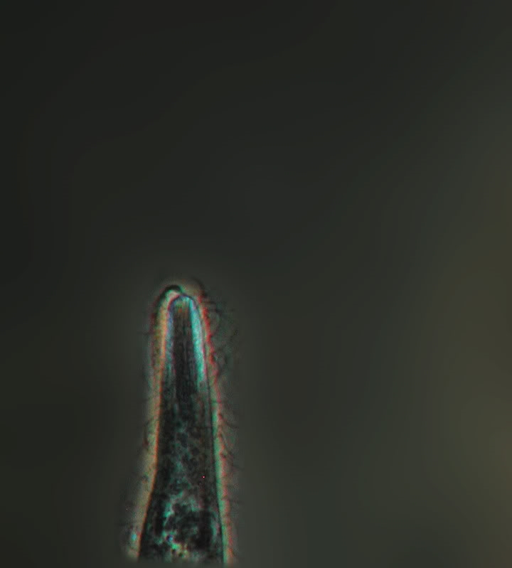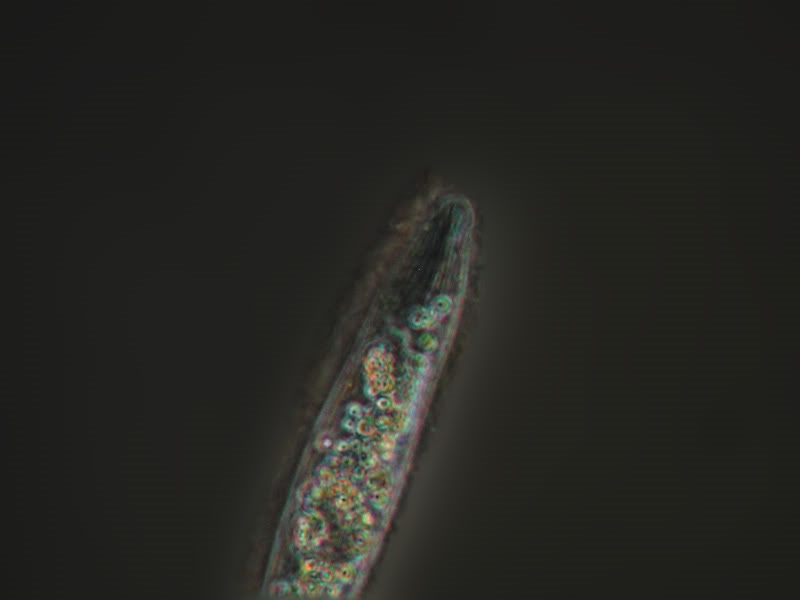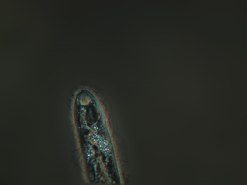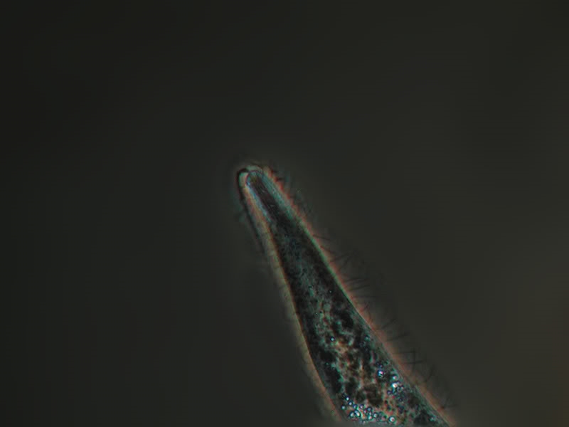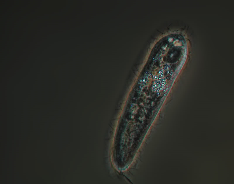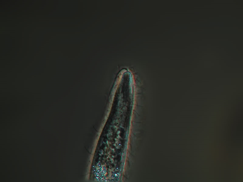 Leider nur in einer Probe gesehen und unter Hektik und suboptimalen Bedingungen (zuviel Detritus) fotografiert. Da man diesen Ciliaten sicher nicht alle Tage sieht, wollte ich mit diesen Belegfotos zumindest davon berichten.