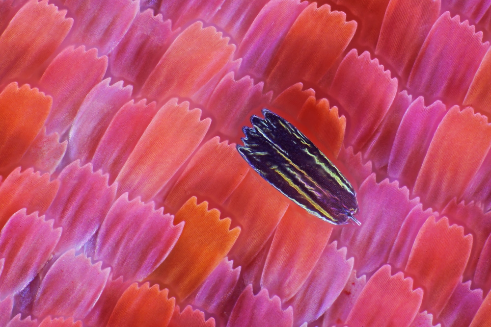 Wie ist das eigentlich mit den so dekorativ einzeln liegenden Schuppen, hast Du da Hand angelegt oder eine "passende" Stelle im Präparat gesucht?