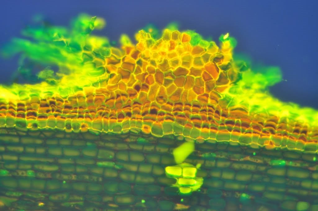 Bild 14 Lentizelle, Fluoreszenzaufnahme, Kirsch-Apfel (Malus baccata)