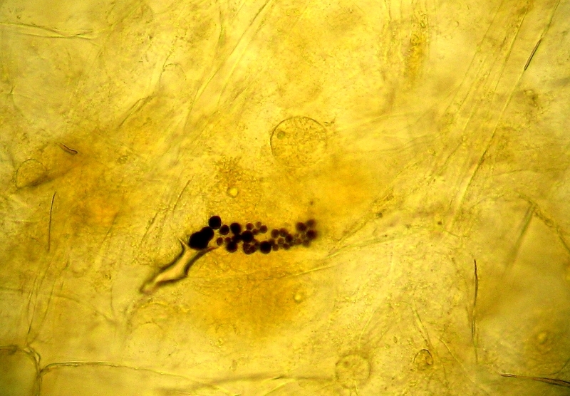 Bild 8: doch Stärkekörner im Fruchtfleisch der Drachenfrucht (400x mit Leica C-Plan 40x)