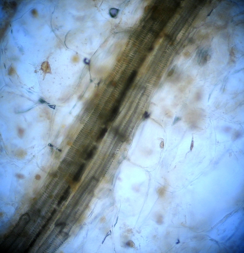 Wenn Du Leitbündel sehen willst, empfehle ich eine etwas größere Probenmenge, dann wird allerdings das Durchziehen von Reagenzien (wie z.B. Lugolsche Lösung oder Farbstoffe) schwieriger bzw. Du erreichst nur die Ränder der Probe.