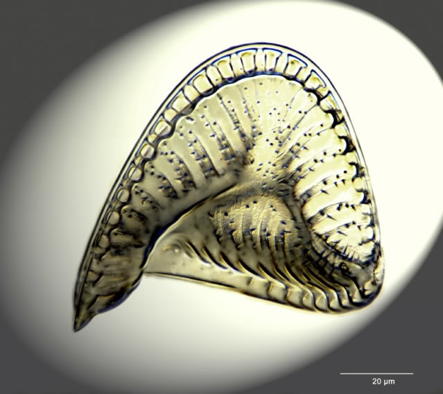 just for fun, eine Campylodiscus, eine fossile Süßwasserdiatomee aus Terrebone (Oregon/USA), im Spotlicht.