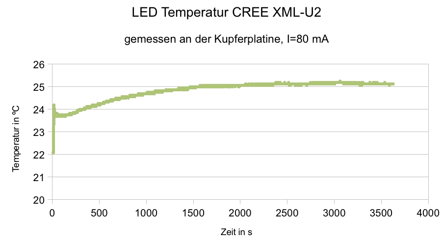 • Messung an der Kupferplatine der CREE XML U2, direkt neben dem Emitter anliegend