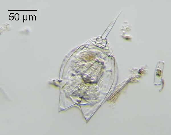 vielen Dank für Deine Antwort. Mich irritiert insbesondere der Fuß, der m.E. nicht zu L. lunaris passt. Bei meiner Recherche im Web stieß ich auf L. decipiens und L. hamata, die mir ähnlicher erscheinen. Leider fand ich in meinen Proben nur dieses eine Tier und auch nur in der gezeigten Ansicht. Die Größenangabe bezieht sich auf das gesamte Tier, d.h. nicht nur auf den Panzer (wie z.B. im Wassertropfen).