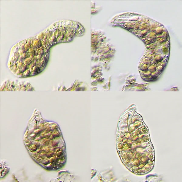 Es ist schwer zu fotografieren, da es sich permanent bewegt und seine Form verändert. Eine Geißel konnte ich leider nicht erkennen. Die Länge ist schwer abzuschätzen, da ich es nie gestreckt erwischt habe. Auf jeden Fall ist es deutlich länger als 150 µm. Fundort: Hochmoor bei Going, Tirol).