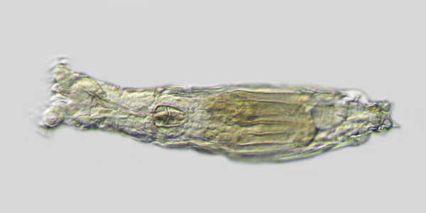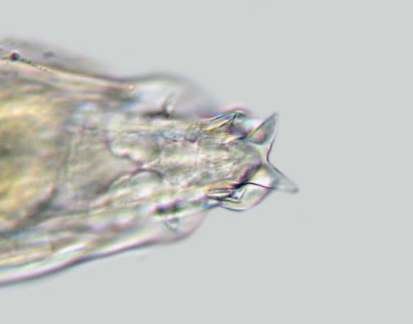 ... Philodina sp. hatte ich auch in der Auswahl. Allerdings hatte ich dem "Wassertropfen" entnommen, daß Rädertiere dieser Gattung 4 Zehen haben sollen, was ich aber bei meinem Exemplar auch bei sorgfältigem Durchfokussieren nicht identifizieren konnte. Deshalb habe ich die Idee verworfen, aber vielleicht habe ich da aber etwas falsch verstanden - ich kenne mich halt nicht genug auf diesem Gebiet aus.