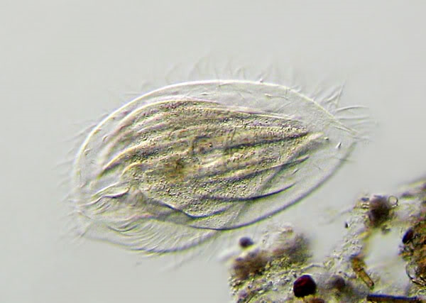 Hier eines meiner Fotos von heute (der Ciliat Phacodinium metchnikoffi - hoffentlich richtig geschrieben ...) MIT Detritus: