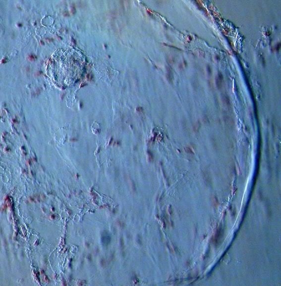 irre ich mich so? Ich meine ich hätte vor Jahren, als ich anfing, zu mikroskopieren, auch Tomatenzellen unter dem Objektiv gehabt und ihr lebhaftes Innenleben bewundert. Heute habe ich - nach etwas Ärger über den fehlenden Tomatengeschmack einer sonst wunderbar roten frischen Tomate noch einmal ein Zupf bzw Quetschpräparat gemacht: keinerlei Bewegung in den Zellen. Die Zellkerne erscheinen in meinen Augen seltsam deformiert, was das Photo belegen soll.